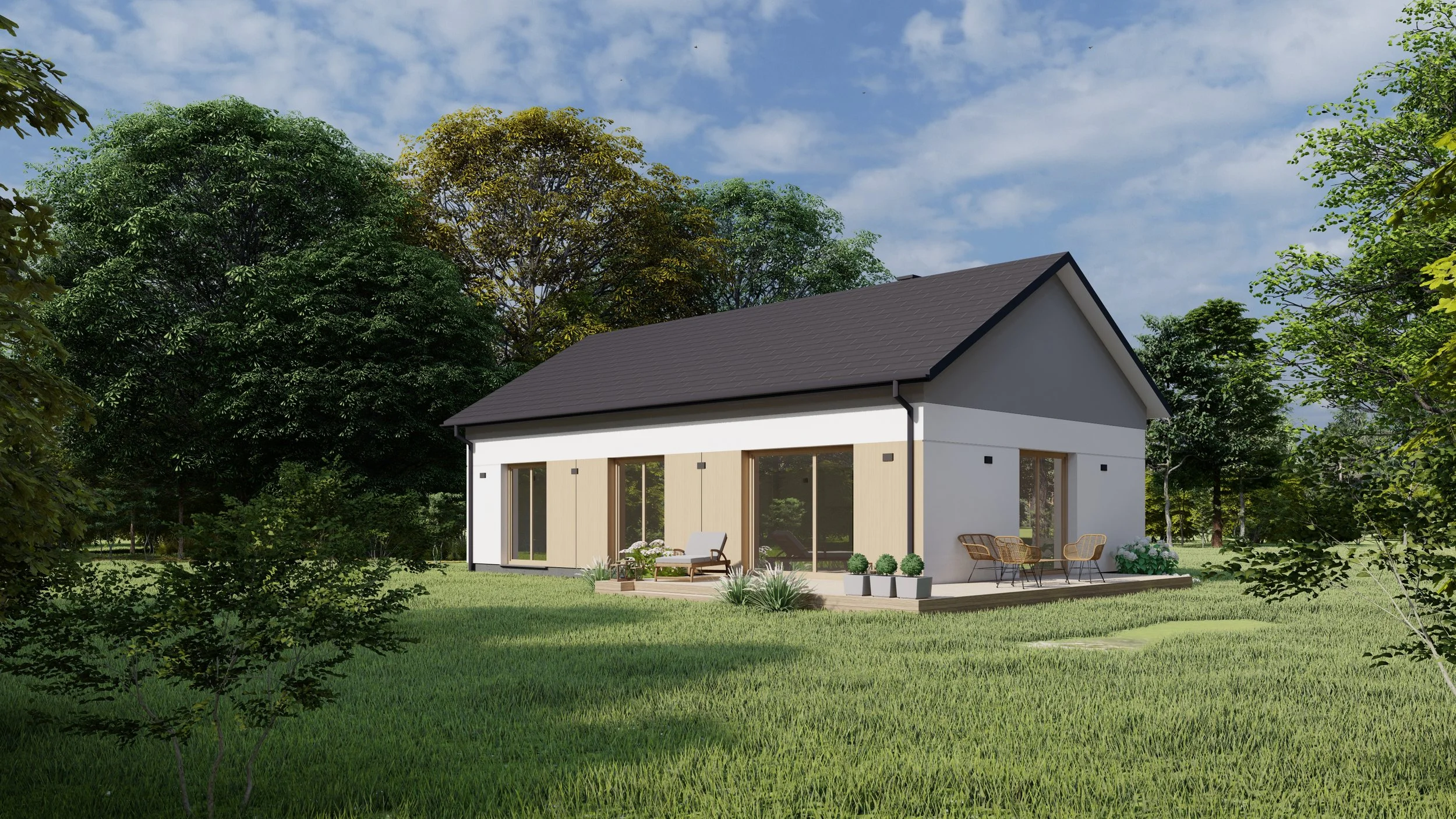 Optymalny Dom w ofercie podstawowej to budynek o powierzchni użytkowej 90 m2, gwarantujący doskonałe możliwość aranżacyjne w korzystnej, zoptymalizowanej cenie. Układ ścian wewnętrznych może być dowolnie zmieniony przez inwestora na etapie projektu.